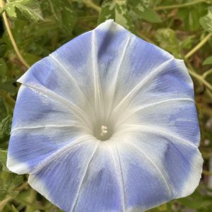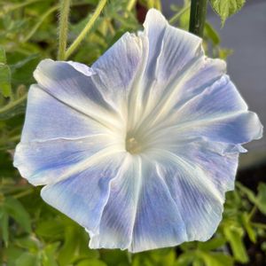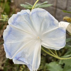 今日は綺麗に咲いてました🥰 アサガオ暁の露。うーん、この薄い青に💙白の🤍縁取りが美しい💙🤍🩵 2枚目は昨日咲きそうだった子ですが、支柱に阻まれて綺麗に開き損なったようです。しかも結構な白🤍 早く気づけばよかったのですが、葉っぱで隠れていたようで気がつきませんでした。可哀想なことをしました。 3枚目はツボミ。明後日頃かな⁉️ 毎朝のように、清々しいお姿を見ることができ嬉しい😊 今年は種がとれるかな😅