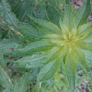 過去Picより たぶん…セイタカアワダチソウ? 葉色のグラデーションが美しいのですが… 葉にしがみついてる可愛い小虫🐞が主役のPicでございます。