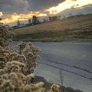 今日の夕焼け 陽が落ちるのが早くなりましたね… 落葉樹の向こうの太陽が 透けて見えるようになりました🍂 美しく夕陽に染まる セイタカアワダチソウ… 枯れ姿が切ないね… 15:33撮影