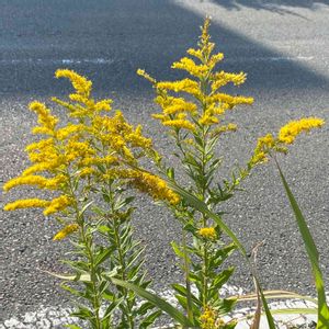 セイタカアワダチソウさんの黄色いいろ、好きです🟡でも花粉症の原因の悪いひとって嫌がられていて、ブタクサではありませんから🟡冤罪、濡れ衣とわかりました🟡強くてかわいいお花🟡花瓶に入れて飾りたいくらい🟡背の低い子達も発見🟡ちゃんといい子だよ、黄色い花は元気もらえるから🟡健気に咲いている頑張り屋さん🟡