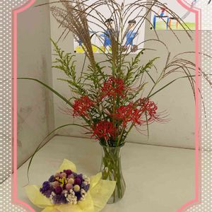 職場の裏の土手に彼岸花〜見〜つけた❣️ 花瓶に挿してみました😍ススキとセイタカアワダチソウも〜♬まんざらでもない😆👌