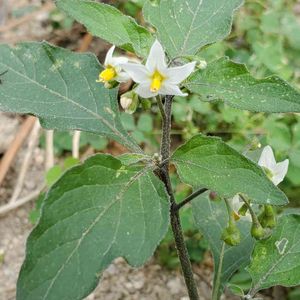 斜め前の空き地からイヌホウズキを 頂戴して来ました 白い花に黒い実が可愛い感じ ❁