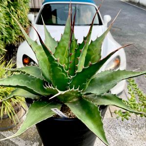 🪴アガベ モンタナ🪴 その後のモンタナ。 ワイルドに雨ざらし。 少し色艶が良くなりつつあるような。 スピンが長くてカッコイイ‼️ 先日、父がこのスピンに触れてしまいめちゃめちゃ痛がってました😢 アガベは気をつけて触りましょう。