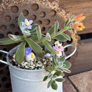 この時期 暑いので寄せ植え等飾っても 水遣り等手がかかる そこで こんな多肉の飾りを 作ってます これらはただ器に挿してあるだけです 今日は 多肉手入れ中の余剰多肉を 使い2鉢 生けて見ました 3枚目は飾った全体ですぅ 時間無くて少し乱れておりますが マンション1階南向きですが ビル街なので日当たりは無い 4枚目のようにヒョロヒョロになってしまう オヤジおぼうぼピータンが 呆れてる😥 5枚目は タキタスの花のカスを中心に 皆様が討論会 コヤツは 種 できてるかいな?