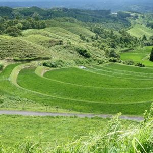 北阿蘇ドライブ🚙記録 阿蘇郡産山村 扇棚田展望所にて📸 赤牛🐂がのんびり草を喰んでいました。