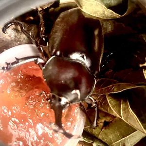 【季節の風物シリーズ;カブト虫】《ほぼ実物大》 カブトムシ;甲虫:beetle 学名:Trypoxylus dichotomus :トリュポクシルス・ディコトマス 具体的には、日本に生息するカブトムシは、亜種としてTrypoxylus dichotomus septentrionalis (トリュポクシルス・ディコトマス・セプテントリオナリス) と呼ばれることが多いみたいです。 また、カブトムシの英語名は "Japanese rhinoceros beetle" と呼ばれることもあります。 📝昆虫用飼育箱の中で、朝食中のカブト虫デス🐶 食欲旺盛で昆虫用ゼリーをムシャムシャして食べてとても元気よく、採集してから10日ほど過ぎています。 《一歌献上》 「カブト虫ムシャムシャと元気よし」 @訳意:The beetles is munching away, have a strong appetite and very energetic. ; カブトムシはムシャムシャと食べており、食欲が旺盛で非常に元気です。 ✍️Works;Poetaster Kazyan Doe.,//筍歌人;藪中和堂 📖豆知識 📝カブトムシは昆虫界の王様で、子供たちの憧れの存在! とても波動の高い存在なのです。 カブトムシを不思議なタイミングで見つけたり、急に現れたりしたときなどはメッセージ性がより高いそうです⁉︎ カブトムシは、卵⇒幼虫⇒蛹⇒成虫へと完全変態します。 見た目がその都度変わる様子から、 「努力が実を結び幸運を象徴する虫」だといわれています。 そんなカブトムシのスピリチュアルな意味としては、 「幸運」「成長」「力」「再生」などがある。 ひょんなことからカブトムシに出会った場合 それは「これから大きく成長するチャンスですョ!」 というメッセージを伝えにきているそうです 📝雄か雌で意味が違う⁉︎ 雄のカブトムシは「力」の象徴 雌は「良縁」 一生懸命努力する人に幸運を運んできてくれる と言われている。 もしも何かに一生懸命取り組んでいる時にカブトムシに出会ったら、あなたの元に大きなチャンスや幸運が訪れるかもしれません。 Artistic;Beetles July27,2025:past am 06:30’;📱shooting July27,2025:past am 07:35';upload by Kazyan’s Green Studio