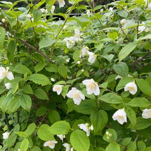 おはようございます☁️ 昨日は みなさんに温かいコメントをいただき ぐっすり寝られ ☆復٩(ˊᗜˋ*)و活☆ ありがとうございまーす😊 今週は 「at random(アトランダム)」 yoyoさんの 🏷️「木曜日は木」 廣花奈さんの 🏷️「秘密の花園♡」 と 🏷️「花咲く乙女たち♡」 に参加させていただきます😊 その④ 「バイカウツギ🤍〰️🤍」 昨夕 どんよりした気持ちを吹き飛ばしてくれたお花の1つ♡ 母が「咲いてるよーもう見た〜?」と言うので 見たら なんとまたかわいい白花が咲いているではありませんか(๑♡∀♡๑)! いい香りがします🍀*゜ ٩(๛ ˘ ㅅ˘)۶クンクン♡ 英語でSatsuma mock orangeというのですが Mock orangeは 直訳すると「真似た まがいもののオレンジ」 オレンジに似た白い花と爽やかな香りを持つため そうつけられたようです でも花型は似てない気がします💦薩摩でも自生してないみたいです😅(謎ω謎) 普通一重のようですが なぜか同じ🌳から 八重咲きのバイカウツギが✨️✨️1輪🤍🙌🏻❕ 突然変異かしら? 嬉しいサプライズ(…°・°…)でした♡ 癒してくれて🤲´-ありがとう! それではみなさん♪̊̈♪̆̈ 今日もステキな1日をお過ごしください🍀*゜ ⋈♡*。゚⋈💜*。゚⋈♡*。゚⋈🐰*。゚⋈♡*。゚⋈💜*。゚⋈♡*。