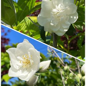 ☆庭のお花達☆ ↖️バイカウツギ、沢山開き始めました! ↗️🌹ニュードーン、1番花です〜 ↙️🌹レオナルドダヴィンチ、 開き始めたこのピンク色が、きれい! ↘️🌹アイスバーグ、又蕾が出てきました 今日は、若干ピンク色に見えてます🤔