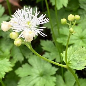 喘息の薬として用いられていたズダヤクシュ(喘息薬種)です。5㎜ほどの長さの小さな花。白い花冠みたいなのは萼片で、雄蕊より少し長い5本の白い針みたいなのが花弁なんですって!びっくり🫢分布は北海道から九州の山地、亜高山6/25長野県