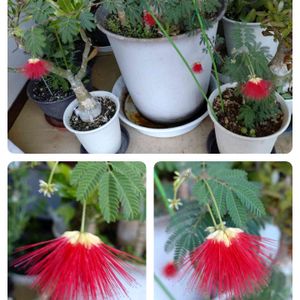 ヒネム(緋合歓)の蕾❣️ 開花直前の蕾を初めて見ました😍 ②もじゃもじゃの蕾がまっすぐ伸びました(右) 全部雄しべの集合体💕 🏷金曜日の蕾たち