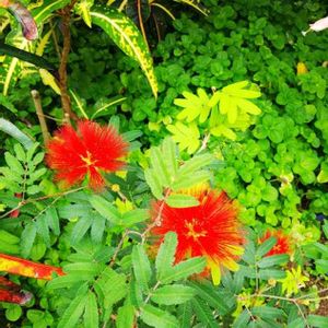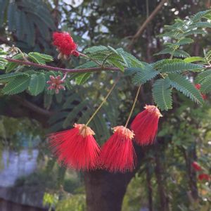 ネムノキの葉に真っ赤な花です✨ 綺麗でした😊