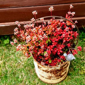 暴れ放題だった紅稚児のお花をカットして花束に🥰 元の方もスッキリ、枝や葉っぱで黒ポット増加…😅 多肉花壇の七福神が元気いっぱい✨ 夏越しできるかなー