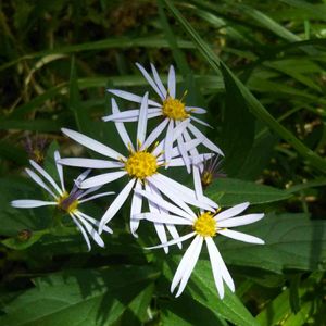 エゾノコンギク (蝦夷野紺菊) 🌿キク科 *高さ50㎝~1mの多年草 *葉は長楕円形で粗い鋸歯縁 *筒状花を20個以下の舌状花が囲む この花は舌状花が細い型です🍀 綺麗な菊です💗