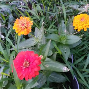 おはようございます☀☁️ ジニアと草の協演です😅 今日は主人の病院から私に呼びだされています💓 今日もお仕事行ってらっしゃい💮😆💮
