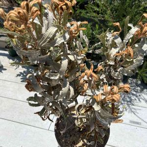 バンクシアメディア もうこれ以上に咲きそうに無い気がしますので、投稿します😊 雨が降る度に、葉っぱ落ちます💦そして、まだ小さい蕾は真っ黒に💦💦 夏の雨は敵面に傷みますね😭 しかし、ここまで楽しませてくれたメディアちゃん、本当に感謝🙏✨