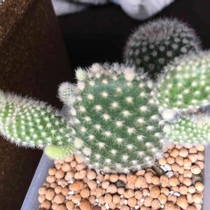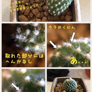 銀小判ちゃんの取れた耳。 避難してた瓶の蓋から 取っておいたミニ鉢に 移しました(*ˊ艸ˋ)♬* まだ根は出てないので なるべく日陰になるように 保護者たちの後ろに隠れます(笑) 土は赤玉土のみです。 赤玉土は菌が付きにくいらしいので 腐れ防止にはなりそうかなぁと... ふとよく見ると 小さい赤い斑点が2~3ほどありました... 親株の方もチラホラ。 これは...ダニ? 部屋構造の都合で 日光浴は布団の上に置いてるから ダニの可能性あるなぁ( ´°ω°` ) でも銀小判だけなんですよね、斑点あるの。(他のサボテンや多肉にはない) マジ謎( ´°ω°` ) 来週あたり霧吹きしてみようと思います 乾燥し過ぎの予防とダニ対策にもならないかなぁと...