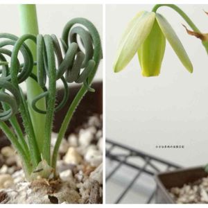 全体が上手く撮れなくて( ´•௰• `) 上下 2枚合わせています🙃 アルブカの花🌼 咲きました☺️ 蕾もあるけどカットします😌 葉先も枯れてきたので、もうすぐお休みですね💞