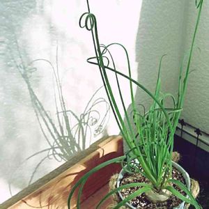 似たような写真の連投失礼ます😅 昨年お迎えした、アルブカスピラリス。 日照不足で、3本生えてきてそのまま枯れてしまいました。 球根も萎びていたので諦めてたんですが、また生えてきました!😵 びっくり! サロンの弱い日差しでは育成が難しいので、自宅の育成ライトを近い距離で照射中です。 今年こそ、伸びてクルクルするかしら?😅 巻いたらとっても可愛いので、タグから覗いてください🌱