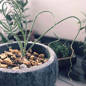 アルプカ スピラリス 9月11日に土を掘り起こし植え替えをしました。 裏側にはピロピロ~っと細い根っ子が二本 これは枯れた残りかな🤔 球根自体は少し透き通った感じで綺麗でした そして 10日後には頭が出てきて、 今日はもう一ヶ所からニョキ❗️ これから増えていくのかなぁ~🤗 スルスル~っと伸びてクルクルっと😄 とても楽しみ~🤗💕