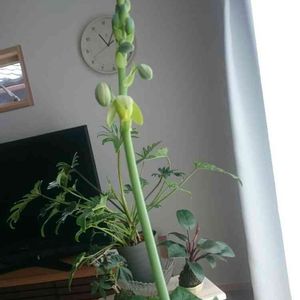 僕の子がもうちょっとで咲きそうです しかも匂いを嗅いだら バニラみたいなあま〜い香りがします どんな感じの花を咲かせるのかなぁ