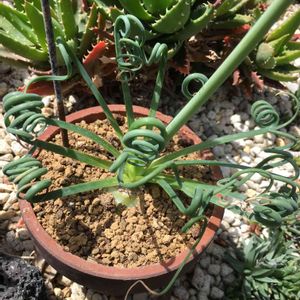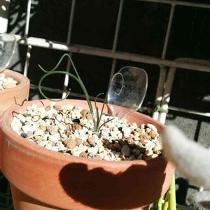 株分けしたアルブカ、葉も細くてクルクル巻きも立派とは言えないけど‥でも花を咲かせてくれた✨よかった😂