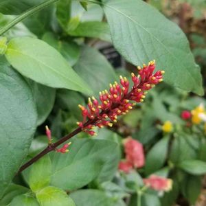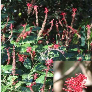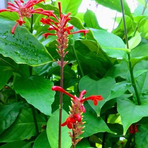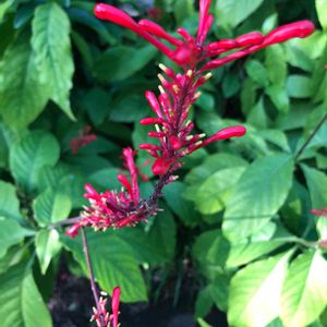 ベニツツバナ🌸 紅筒花、キツネノマゴ科 別名:ファイヤースパイク😊 末吉公園で見かけた花🌸