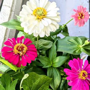 こんにちはです。 GS本日のお花は、「百日草/ジニア」 ①ザハラ系のジニア🤍🩷♥💛 3年前に種から成長して、たくさん写真も撮ったのですが、見当たらず。残念… 投稿からダウンロードしてきました。 ②今シーズンの色とりどりに咲いていたジニア ③ご近所さんのレモン色のジニアたち