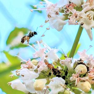 数日前の奇跡の1枚。 西洋人参木と蜂のコラボレーションでした。