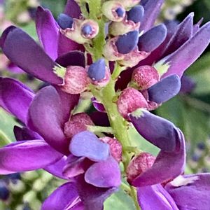今日の庭の様子 ①ムラサキナツフジ ②クチナシ ③サルビアコッキネア ④朝焼け