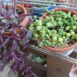 おはようございます🌱 久しぶりの青空がみえます✨ やっぱりいいですね😄🎵 昨日ベランダの植物を模様替え🌱 切り戻ししたグリーンネックレスがもりもり復活してきています🌱🌱
