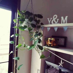 大きくなったポトス♪ 100均でお迎えしてから約1年で先日、吊り鉢に植え替えによりのびのびポトス。 掛ける場所がここしかなくて日光当たりすぎてあまり良くないかなって思ったけど毎日伸びる!すごい!