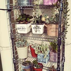 おはようございます😃🌇🐔 おね蔵Garden 模様替え、一旦終了🙌✴ 段々畑風に棚板増やしました。 ちょっとゴチャゴチャしてる...😅ので、又改良の余地ありですね😂 ぼちぼちやります(•ө•)♡ 今日は月曜日 今週もよろしくお願いします☺💛