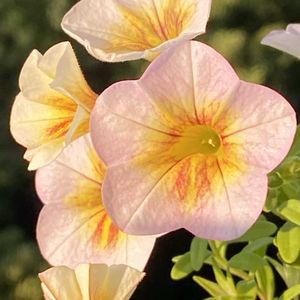 ᰔᩚ ᥫᩣ カリブラコア カプチーノ 切り戻し後の開花·̩͙꒰ঌ(𐭅" ॑ ॑")𐭅ᰔᩚ ハイビスカスアドニスイエロー 蕾が開きかけると落ちる( •ᴖ •。) ベビーコスモス お花はまだだけど種から2本だけ出てきました🌱🌱 朝焼けお花の陰もまた宜し 綺麗な朝焼けでした 何時のかな マツバボタン発芽していました❣️