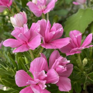 ᰔᩚ ᥫᩣ ピンク色のお花で㊗️🌸🎉 🎂(⚫) ´`・ )( ・ ´`(●)🎂 ✧秋明菊アーリーオータム ✧日々草エンジェルローズ ✧ペチュニア 雨の日曜日になりました 蒸し蒸し☔️ お花たちはイキイキしております🌸