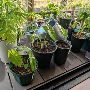 全滅させた はず の アロカシア、再び出現👍✨ 芋、すばらし🥳 去年の夏はワトソニアだけ 出現してくれた。 今年の冬も、 なんやかんや、5種類くらいいたが…みな土の上からいなくなった😰 春先… 微かな希望を胸に 確認できないが お芋さんいてください🙏 と祈りながら 一番デカい、ワトソニアがいた鉢に他の子らの鉢土を投げ込み放置していた。 数週間前にワトソニアかと思われる子が 出てきた😳✨ そして昨日、 ブラックステムがでてきていた。 ムフ💕 ジリジリ太陽にやられる前に移動させた。