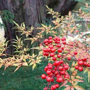 桐生市 宗禅寺の樹齢800年の糸杉と南天の紅葉