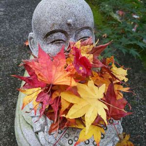 もみじ寺にて✨ お地蔵さまー😆🍁🍁🍁 モミジ載せすぎ💦