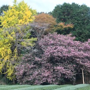 一度見てみたかった樹齢130年らしい サザンカとイチョウのコラボ。 圧巻でした😊