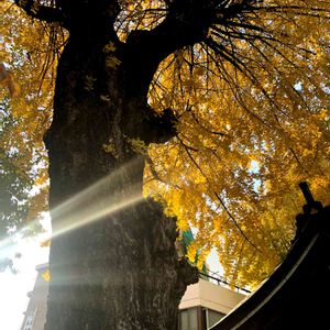 神社⛩の裏側にあるイチョウの木 ちょうど西日が差し掛かり、 後光?が差している様なpicが撮れました 神様の御加護にあやかれます様に😊✨