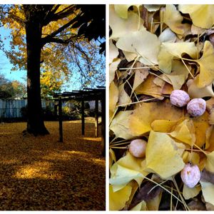 イチョウ 落ち葉の絨毯と銀杏の実 匂いが漂っていました。