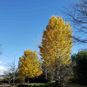 3本のイチョウが黄葉しています。 同じ場所に立っていても、それぞれ黄葉の具合が違っています😃 木にも個性があるのでしょう😉