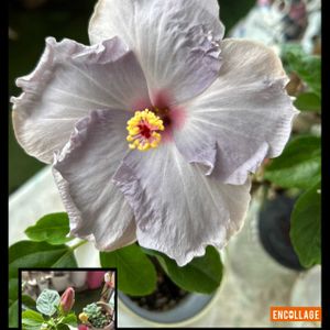 パープルハイビスカス またまた咲いた つぼみがあるから またすぐに咲くわぁ 鉢が小さく 変えたいのだけど 一緒に買ったピンクのハイビスカス 鉢変えたら❌になってしまったから 移し替えできない