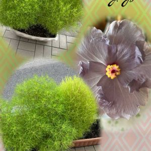 近所のコキア 毎年植えてる日当たり良くて大きく 育ってる。 こないだつぼみだった パープルハイビスカスが咲いたよ