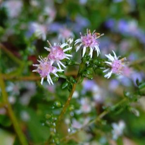 アスター レディインブラック 葉が気温が下がると黒みを帯びる宿根アスター 花芯はピンクに染まって小花がいっぱい🌸🌸🌸🌸🌸🖤