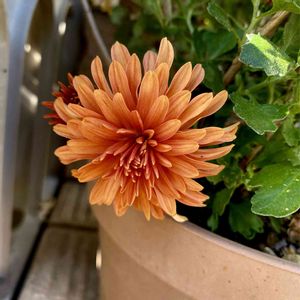 茶色のマム もっと茶色なんですが 上手く撮影出来ません(>︿<。) 濃い茶色で綺麗です。 ミニマムですが大きくなりました。 沢山咲いてくれたので 本当に嬉しいです😊