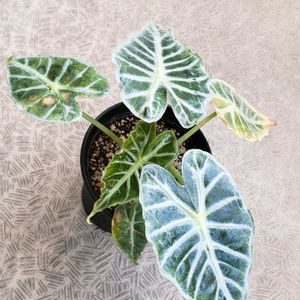 お盆を迎えるので 昨年亡くなった わんこへの 供花を買いに 会社の近所にある お花屋さんへ 行くと 気になる植物が…(꒪∆꒪;) 取り敢えずは 供花を購入して 会社に戻ったのですが どうしても気になり 会社を抜けて もう一度 お花屋さんへ ε=ε=٩(๑・∀・)۶ Alocasia "Parasol" 🏖 昔からある アマゾニカに よく似ていますが アマゾニカに比べ 葉脈の白色が 強い感じがします❢ みんな ¥1,800の値札が 付いているのに 何故か この子だけは¥1,300 🤔 衝動で お迎えしてしまいました 画像3枚目は わんこへの 供花です U^ェ^U