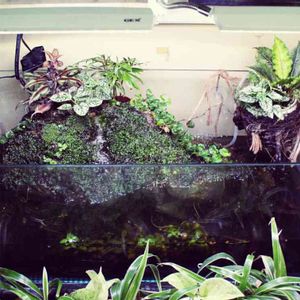 なかなか苔が定着せず繁殖力の強い草が生い茂ってたけど、望んだ風景にならず(-_-#) この夏に繁殖したウィローモスを貼り付けたら何とか定着してる様です。 でもなかなか納得いく景色が作れません(-。-;) いま頭には多肉さんと岩など組み合わせたミニ庭園🌴🌵🏡🗻🎵 このままウィローモスが育つの見守りたい気もするけど、このGSで皆さんの素敵なpic観てるうちに多肉にハマりそうになってますσ(^_^;