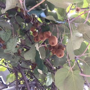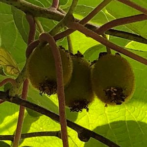 今年の4月に初めてキーウィー🥝のお花を 見ました。 先週末に見に行ったらちゃんとキーウィー🥝になっていました。 収穫にはまだまだですね。 姫さ〜ん、キーウィー🥝ですよ!