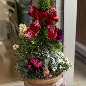 先程、昨年の作品を投稿しましたが、今度は今年のお正月飾りです🎍 ゴールドクレストを中心に葉牡丹とジュリアンの変わり咲きです🏵️ 去年よりも少しだけ進歩したような気がします…❔