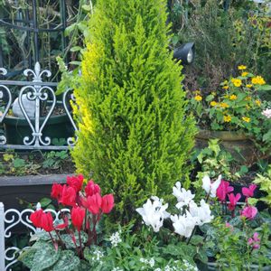 。:°ஐ*。:°ʚ♥︎ɞガーデンシクラメン。:°ஐ*。:°ʚ♥︎ɞ 冬の寄せ植えには欠かせないガーデンシクラメンはゴールドクレストとの相性も抜群です。